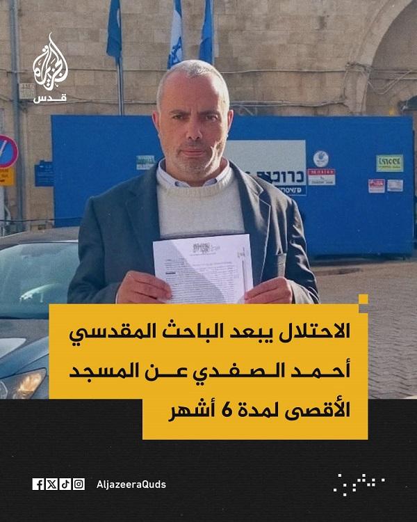 الاحتلال يبعد الصحفي أحمد الصفدي عن المسجد الأقصى 6 أشهر وسط تصعيد ضد الفلسطينيين