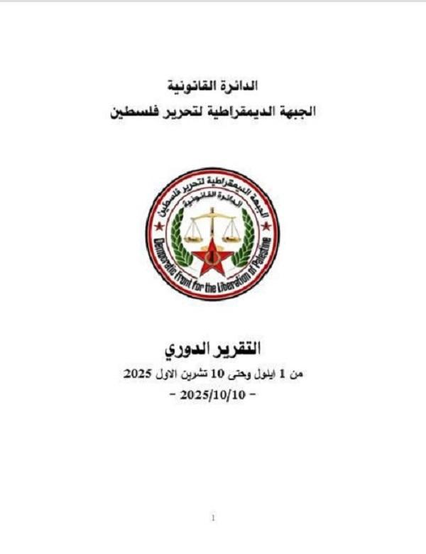 التقرير الدوري الصادر عن "الدائرة القانونية في الجبهة الديمقراطية لتحرير فلسطين"