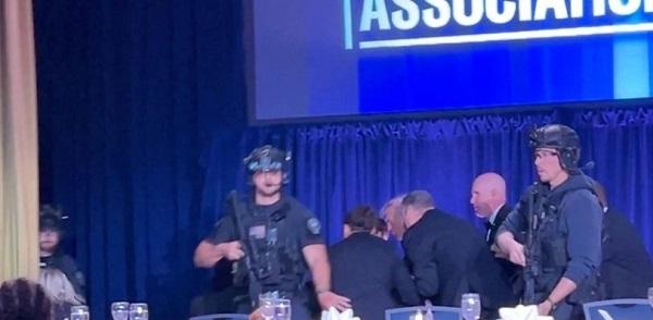 وأعلن مسؤول في مكتب التحقيقات الفيدرالي (إف بي آي) أن شخصًا مسلحًا ببندقية حاول اختراق الأمن في حفل العشاء.