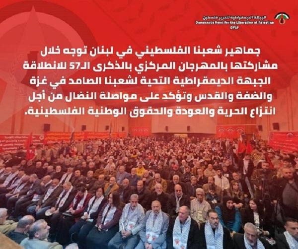 حضور جماهيري ووطني فلسطيني وعربي وأممي حاشد في مهرجان العيد الواحد والخمسين لانطلاقة الجبهة الديمقراطية لتحرير فلسطين