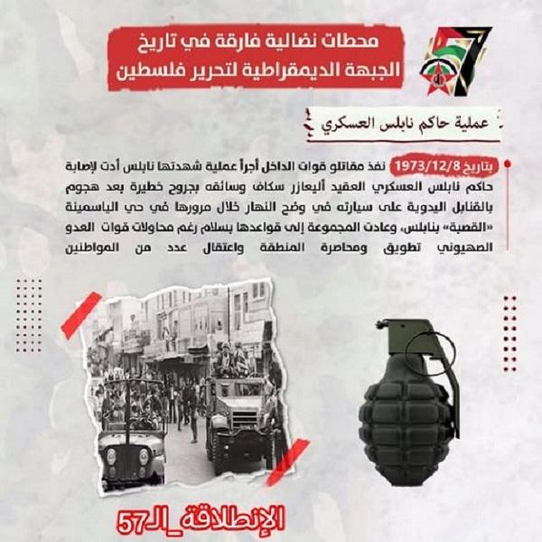 الإنطلاقة الـ57 محطات نضالية الجبهة الديمقراطية لتحرير فلسطين عملية حاكم نابلس العسكري