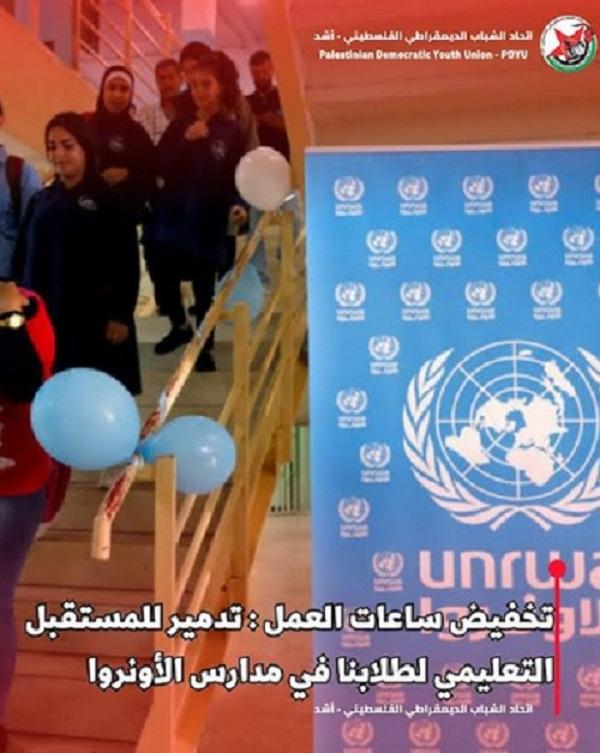بيان صادر عن اتحاد الشباب الديمقراطي الفلسطيني "أشد" في لبنان "تخفيض ساعات العمل: تدمير للمستقبل التعليمي لطلابنا في مدارس الأونروا"