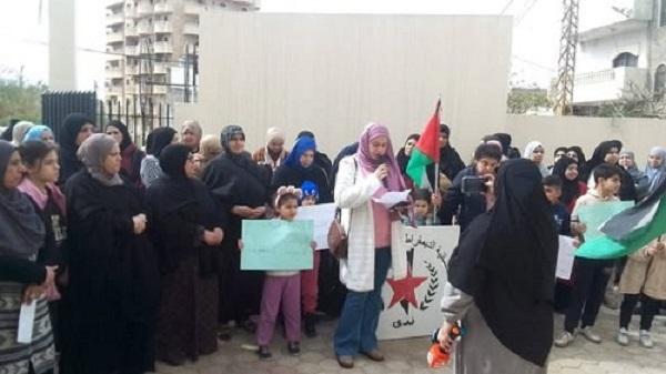 ندى تنظم : اعتصاما جماهيريا أمام مكتب مدير وكالة غوث وتشغيل اللاجئين الفلسطينيين (الأونروا) في مخيم البداوي بدعوة من النسائية الديمقراطية الفلسطينية ( ندى )