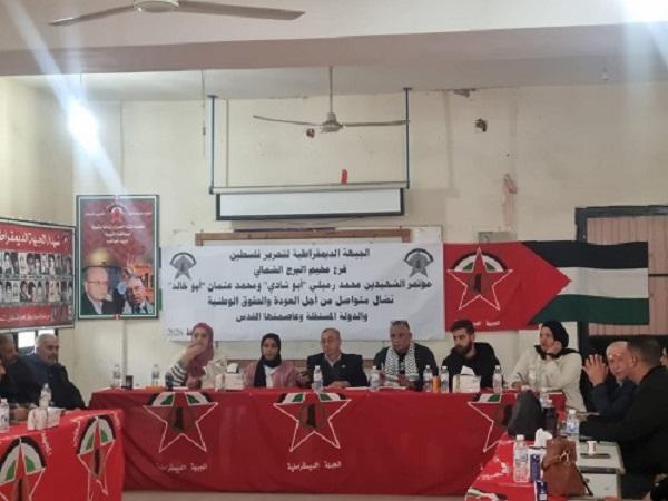 الجبهة الديمقراطية تعقد مؤتمرها في مخيم البرج الشمالي بجنوب لبنان (مؤتمر الشهداء القادة محمد رميلي ومحمد عثمان )