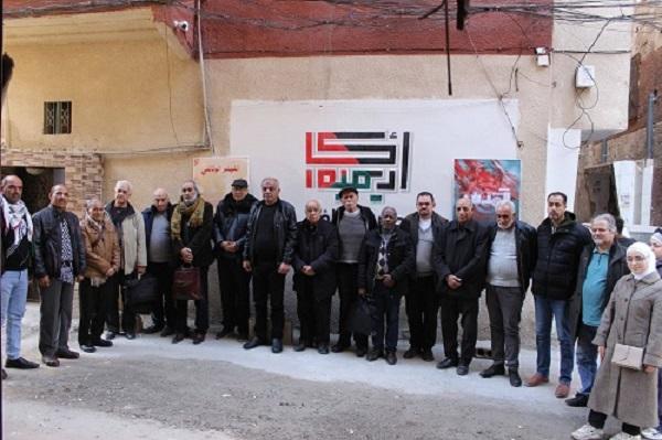 مخيم اليرموك «الديمقراطية» ورابطة الأسرى والمحررين في الجبهة تشاركان في وقفة تضامنية مع الأسرى في أكاديمية دار الثقافة.
