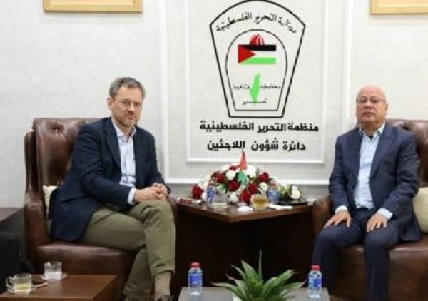 بحث عضو اللجنة التنفيذية لمنظمة التحرير الفلسطينية، رئيس دائرة شؤون اللاجئين د. أحمد أبو هولي، مع مستشار رئيس مكتب المعهد الأوروبي للسلام، بيورن كونه، سبل حماية وكالة الأونروا وحشد الموارد لسد عجز موازنتها، إلى جانب تحسين اوضاع المخيمات في ظل التحديات الراهنة، وآليات التصدي لقرارات الكابينت الإسرائيلي الأخيرة ومخططاته لتصفية الاونروا وتقويض حقوق اللاجئين .