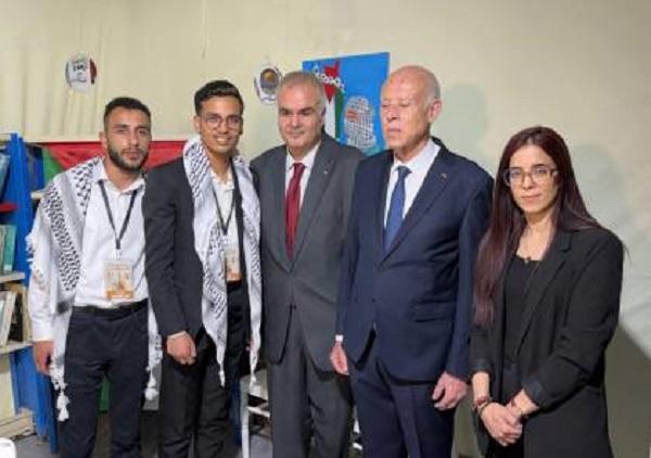 زار رئيس الجمهورية التونسية قيس سعيد جناح دولة فلسطين في فعاليات الدورة الأربعين من معرض تونس الدولي للكتاب، وكان في استقباله سفير فلسطين لدى تونس رامي فاروق القدومي.